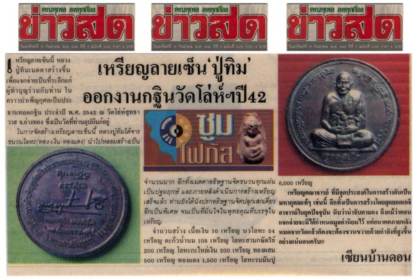 : หลวงปู่ทิมเมตตตาปรกอธิษฐานจิตปลุกเสกเหรียญหลังลายเซ็นต์ เมื่อปี2542 ณ วัดโล่ห์สุทธาวาส จังหวัดอ่างทอง (หมด-ไม่มีให้บูชา)