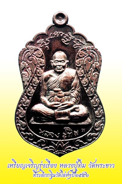 : หลวงปู่ทิม อตฺสนฺโต วัดพระขาว เมตตาปลุกเสกวัตถุมงคลที่ระลึกของท่าน เพื่อแจกจ่ายมอบแด่ผู้ที่ร่วมทำบุญกับท่าน ในวาระที่ท่านบำเพ็ญกุศลเป็นประธานทอดกฐิน ณ วัดโล่ห์สุทธาวาส จ.อ่างทอง ในปีพุทธศักราช 2551 (เหรียญเจริญรุ่งเรือง หลวงปู่ทิม วัดพระขาว นี้ ได้รับการปลุกเสกจากหลวงปู่ทิมแล้วพร้อมๆกับลูกอมชานหากหัวใจพระสีวลี ปี2551 แต่เนื่องจากหลวงปู่ทิมท่านมรณภาพก่อนถึงงานทอดกฐินปี2552 ทางวัดโล่ฯจึงนำเหรียญดังกล่าวออกมาแจกจ่ายในงานทอดกฐินปี2552)