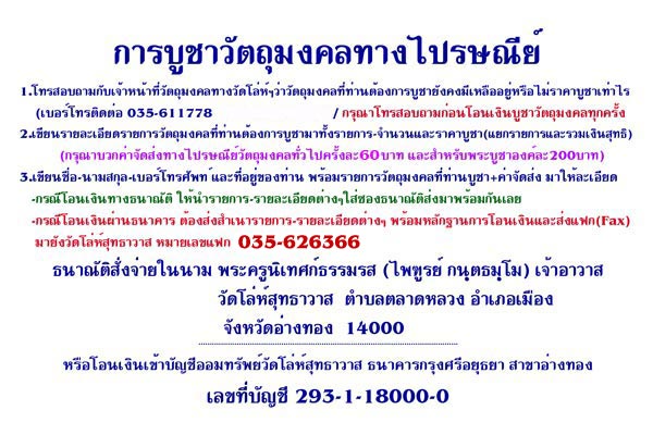 - การบูชาวัตถุมงคลทางไปรษณีย์