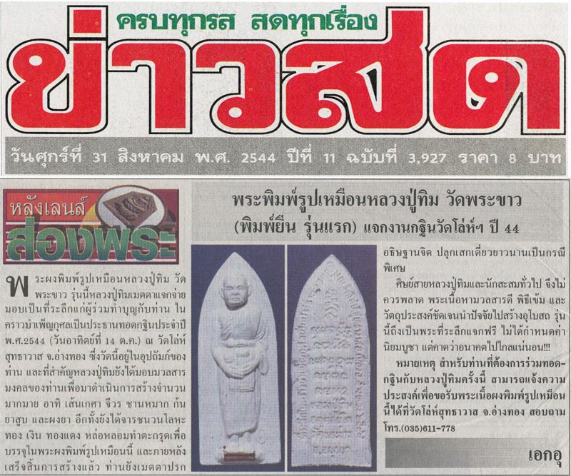 วัตถุมงคลหลวงปู่ทิม วัดพระขาว